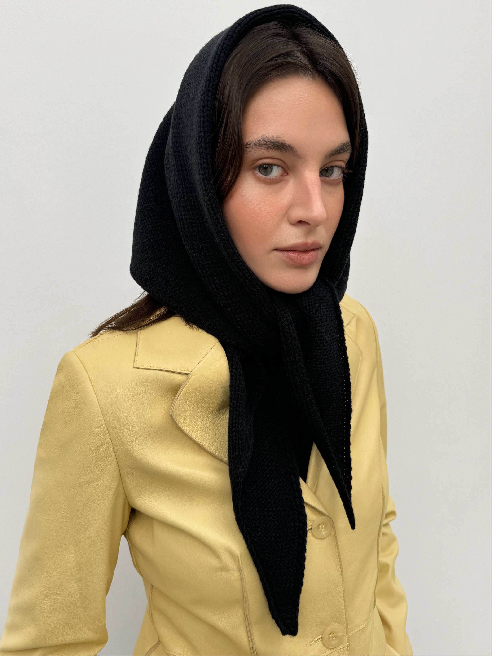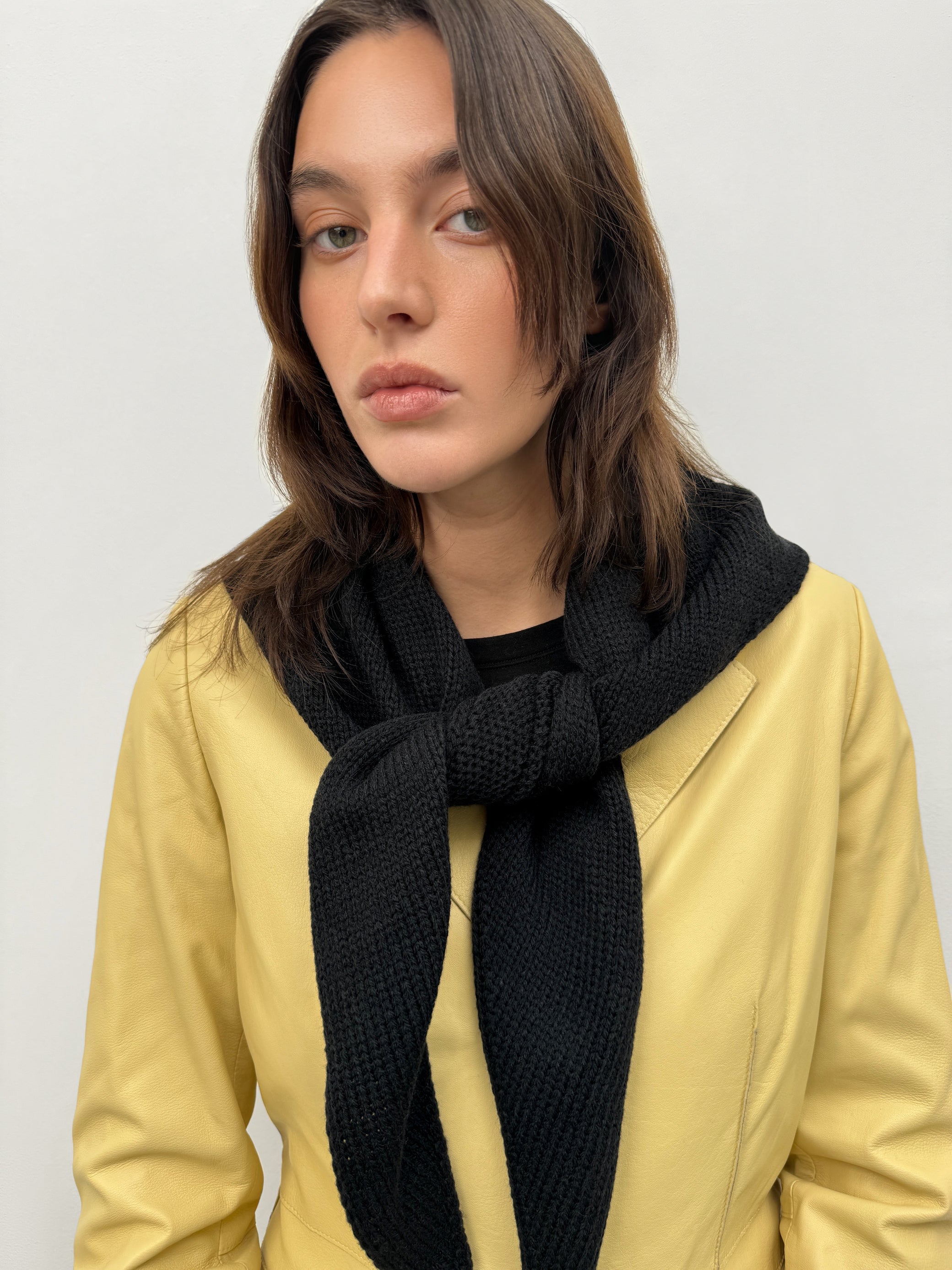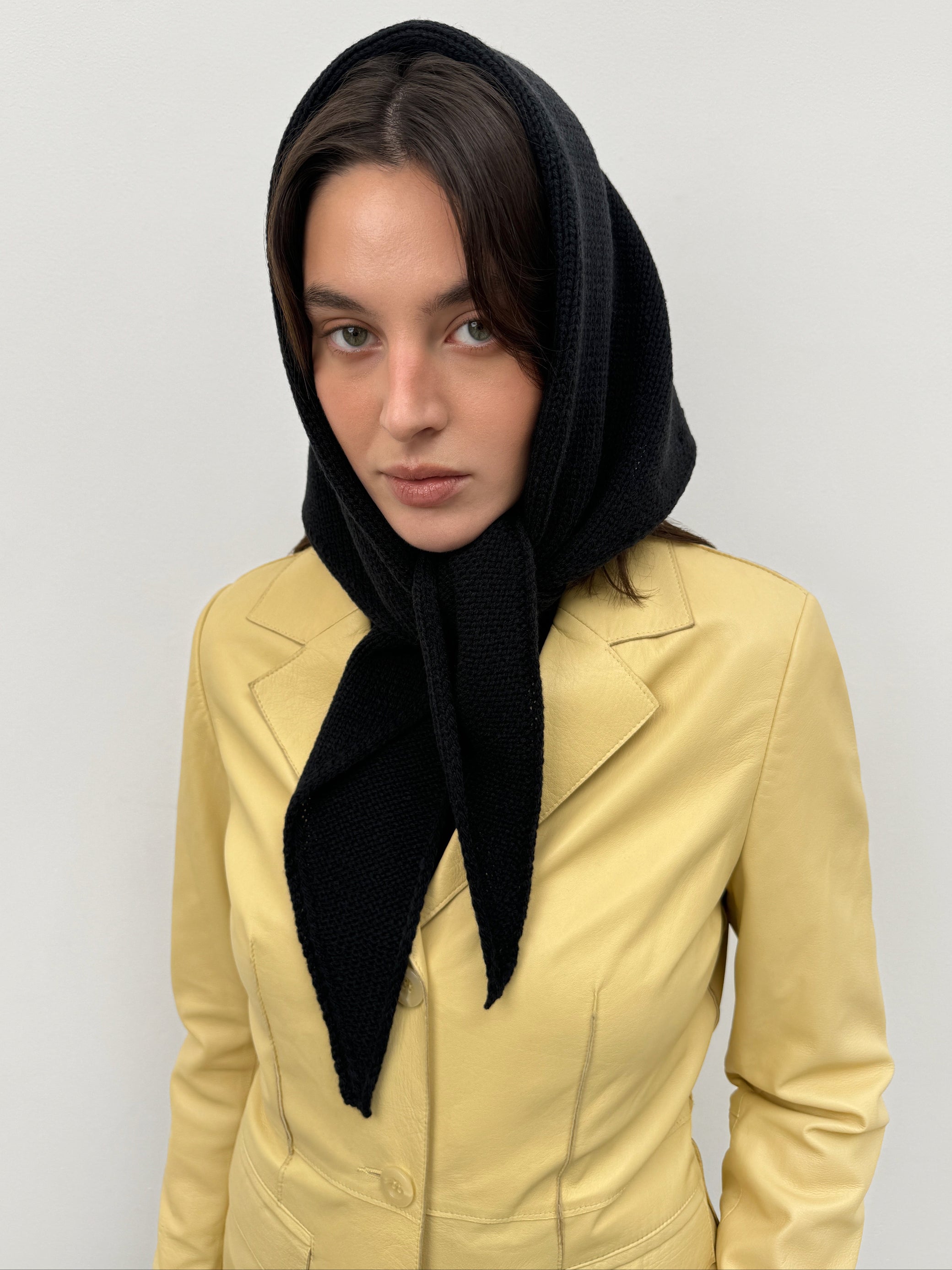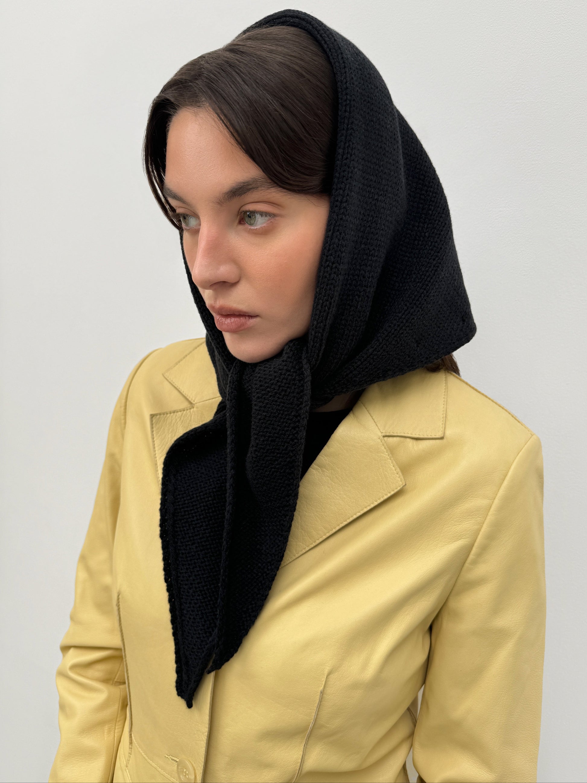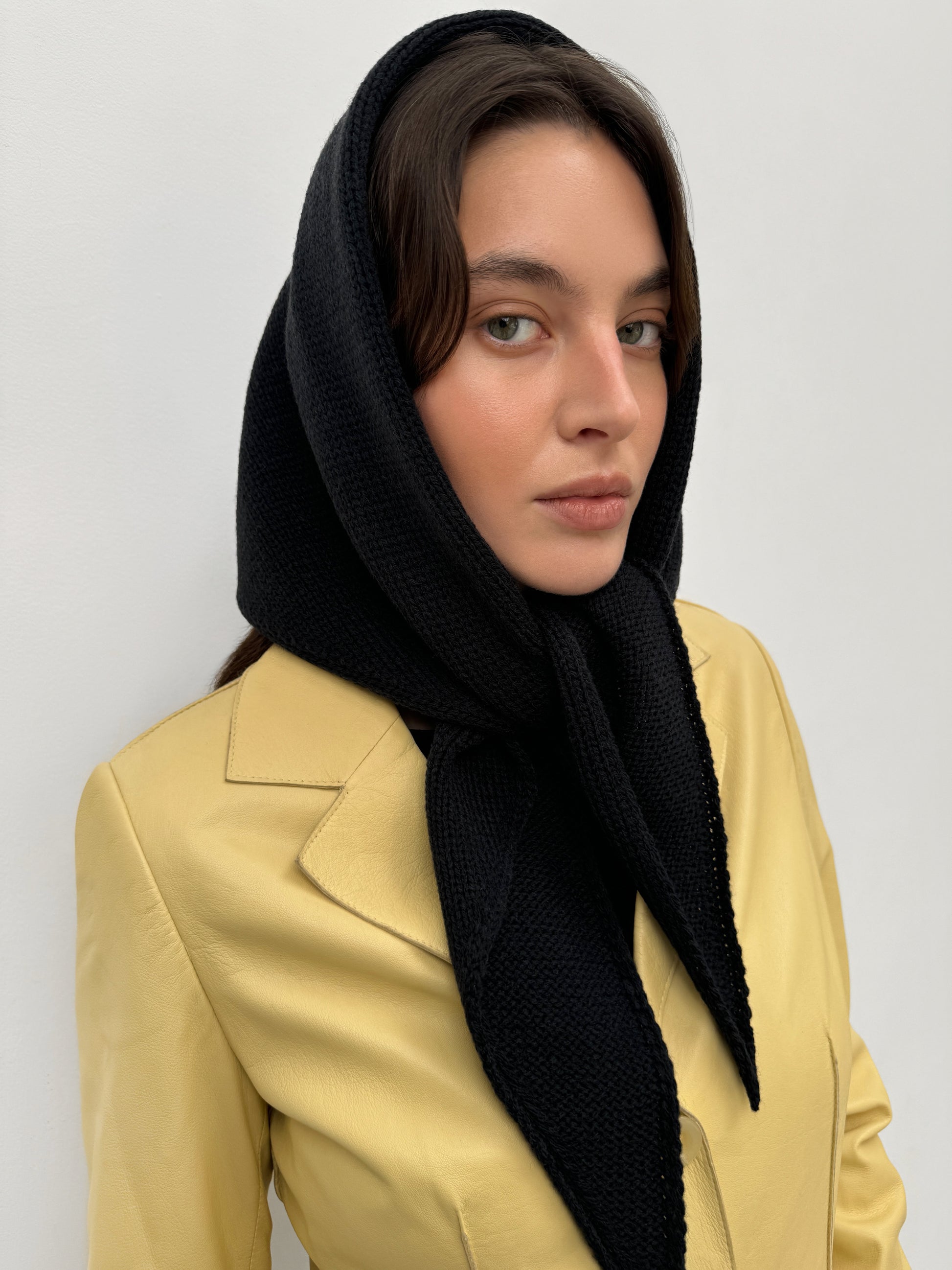 В’язана косинка з мериносу, створена як стриманий і водночас акцентний елемент гардеробу. Тепла й добре збалансована за щільністю — вона має м’яку посадку та невимушено лягає на плечі.