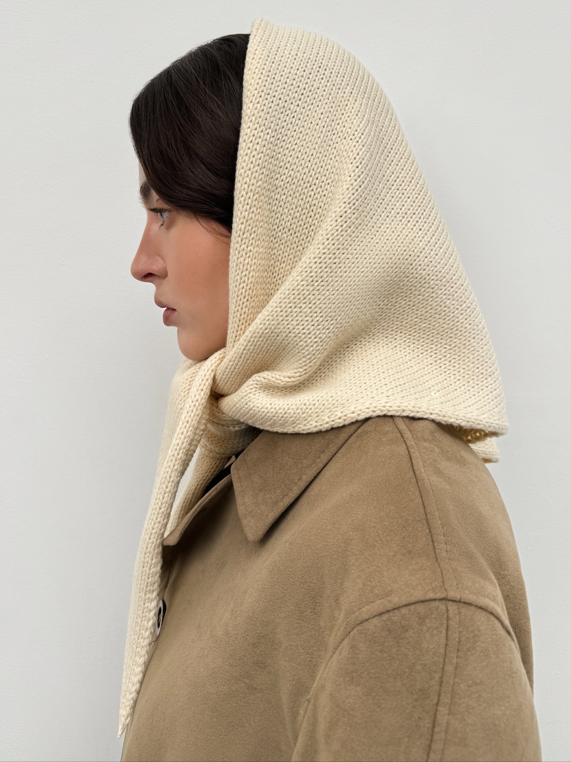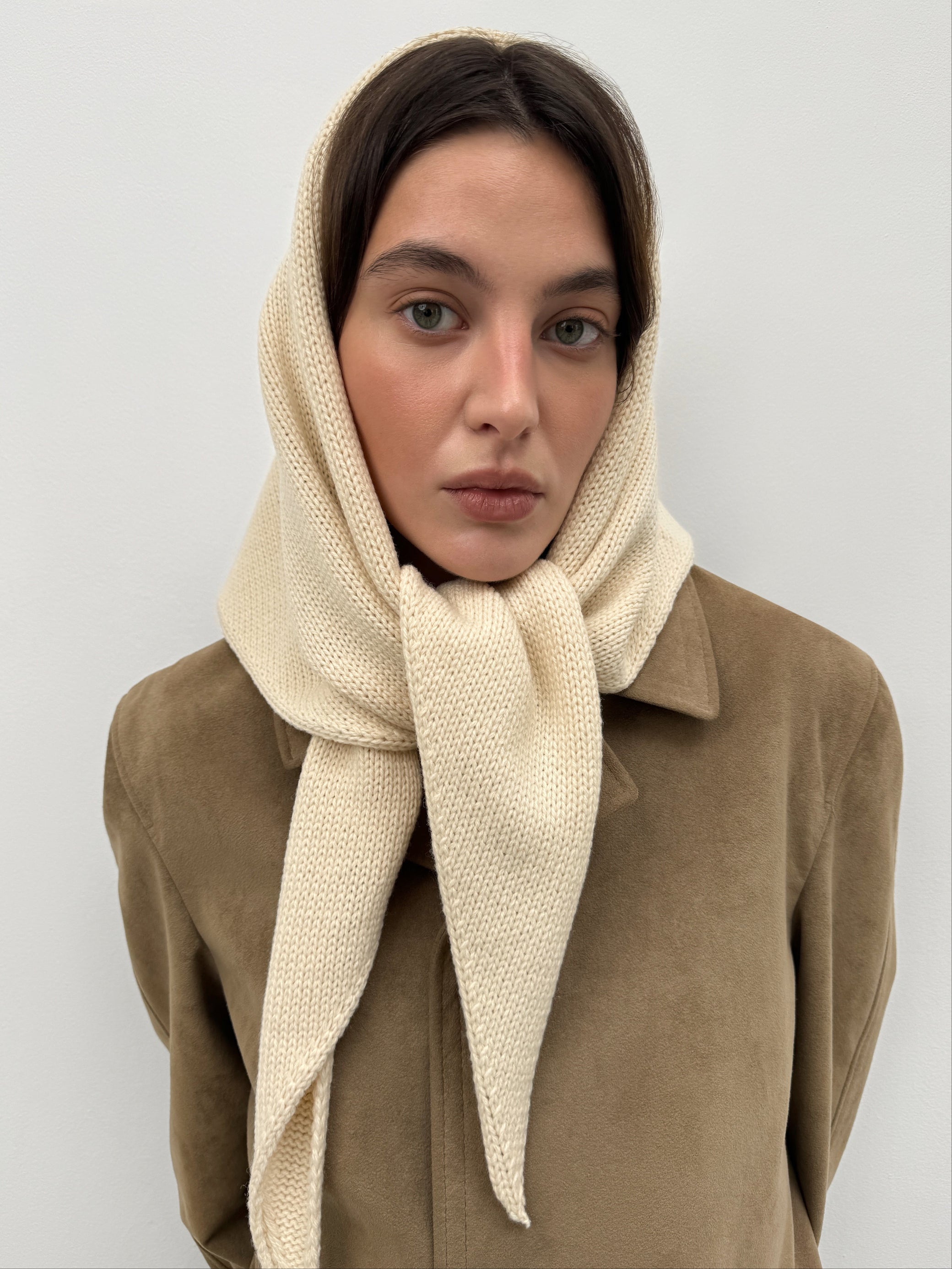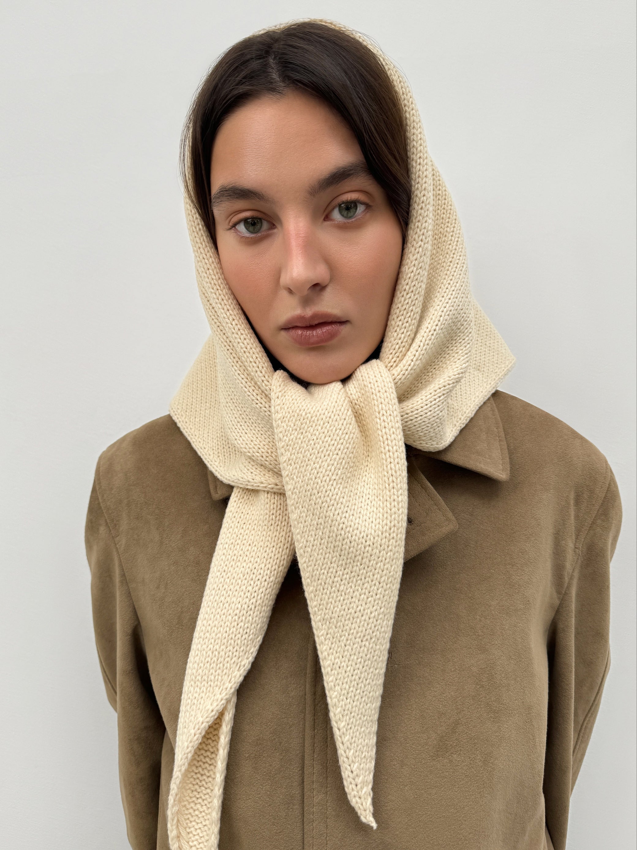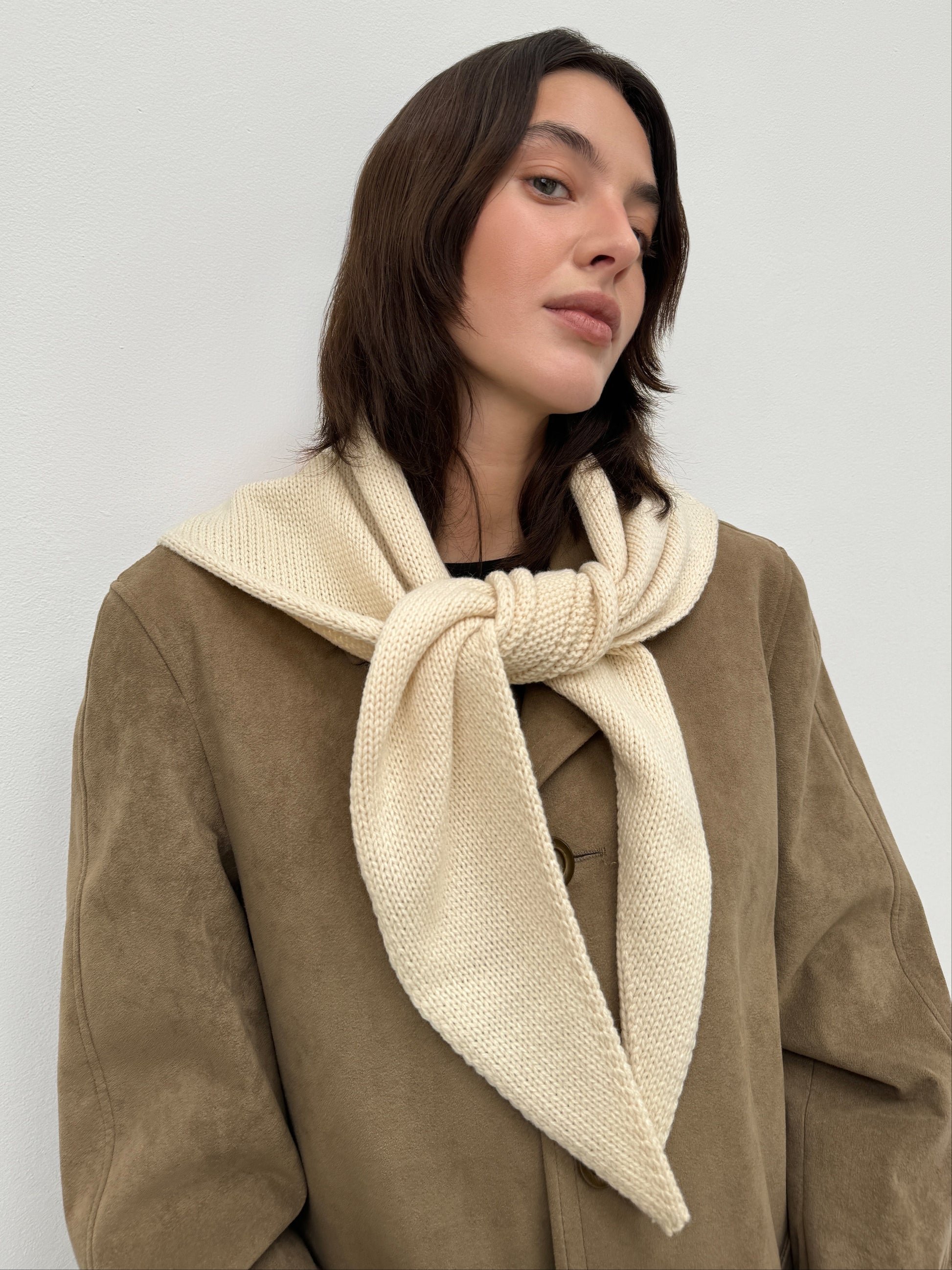В’язана косинка з мериносу, створена як стриманий і водночас акцентний елемент гардеробу. Тепла й добре збалансована за щільністю — вона має м’яку посадку та невимушено лягає на плечі.