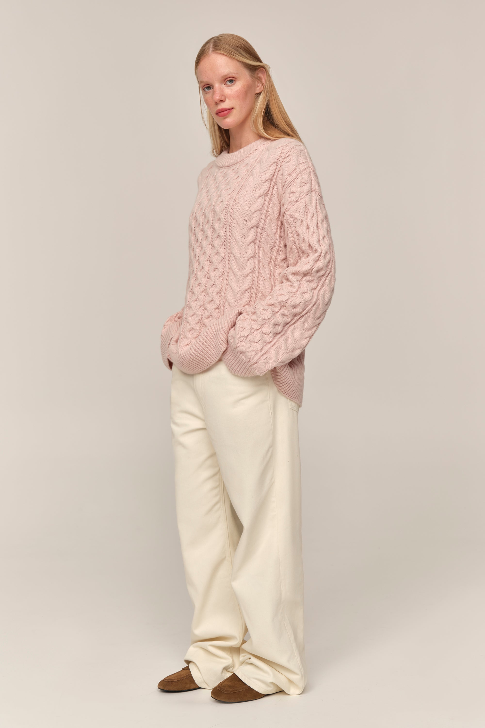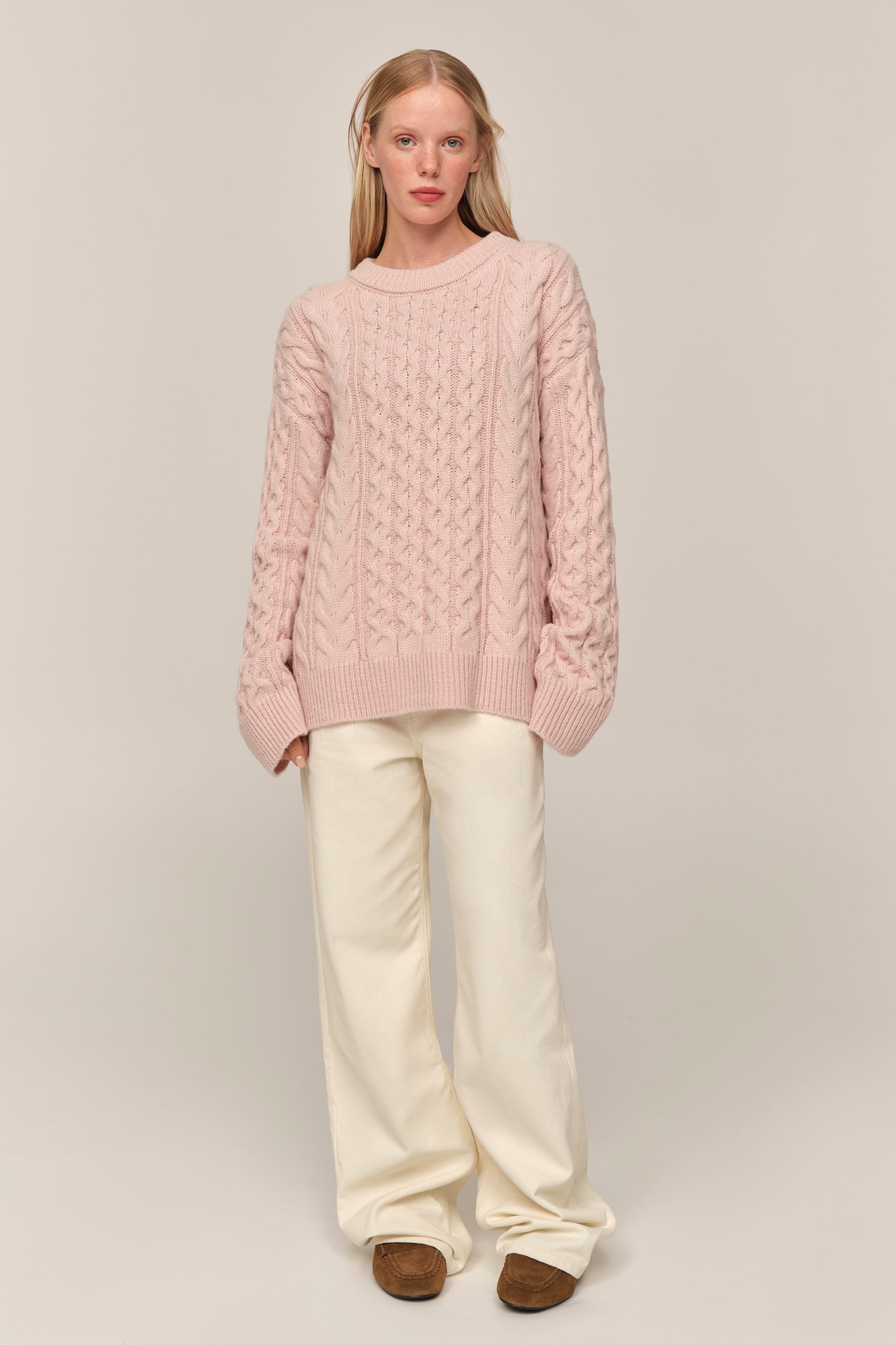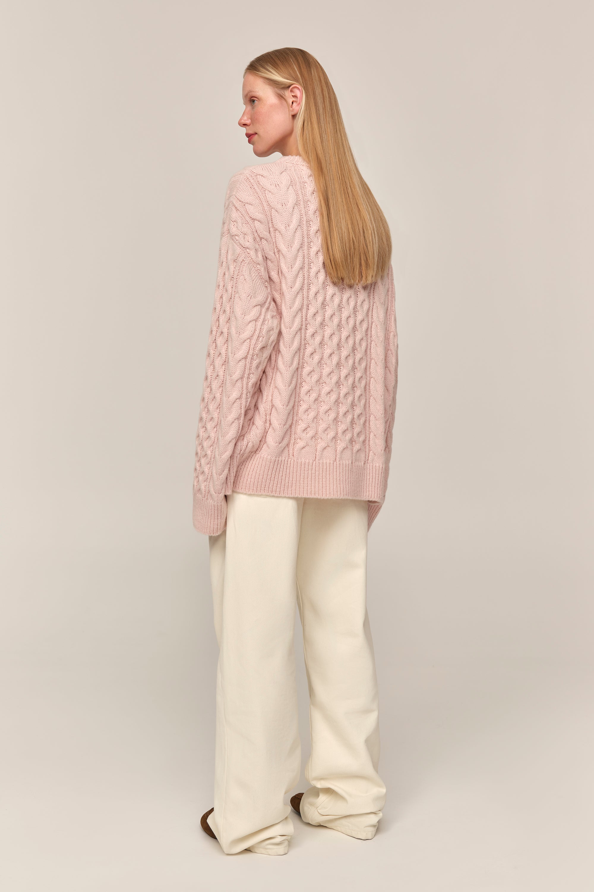 Светр Avena був розроблений як стримане втілення комфорту. Візерунок із кос має позачасову естетику, що відсилає до класичних архівів трикотажу, але водночас звучить м’яко й сучасно. Довгі рукава та силует з відчутним об’ємом роблять його невимушеним у щоденному образі — стриманим, але ніколи не буденним. Він працює як ключова річ гардеробу, органічний у простих поєднаннях і виразний у більш продуманих стилізаціях.