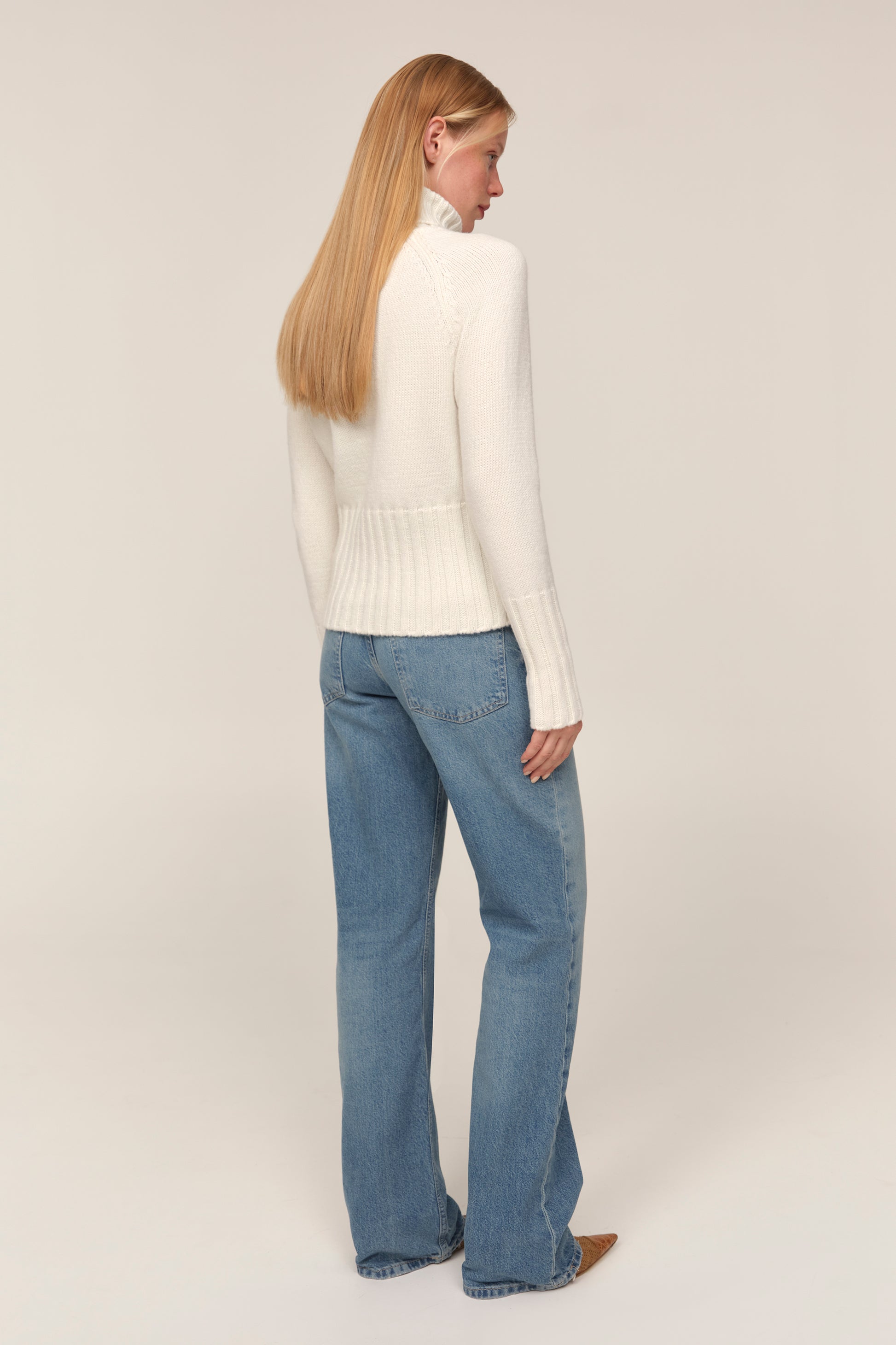 Orla — светр, створений для точності форми. Приталений силует, м’який комір і видовжені рукава формують чисту лінію без надлишків. Завдяки м’якій пряжі він комфортно прилягає до тіла й не створює відчуття важкості. Светр Orla найкраще розкривається саме у вашому розмірі — ми розробили його для точної, анатомічної посадки без надлишку об’єму.
