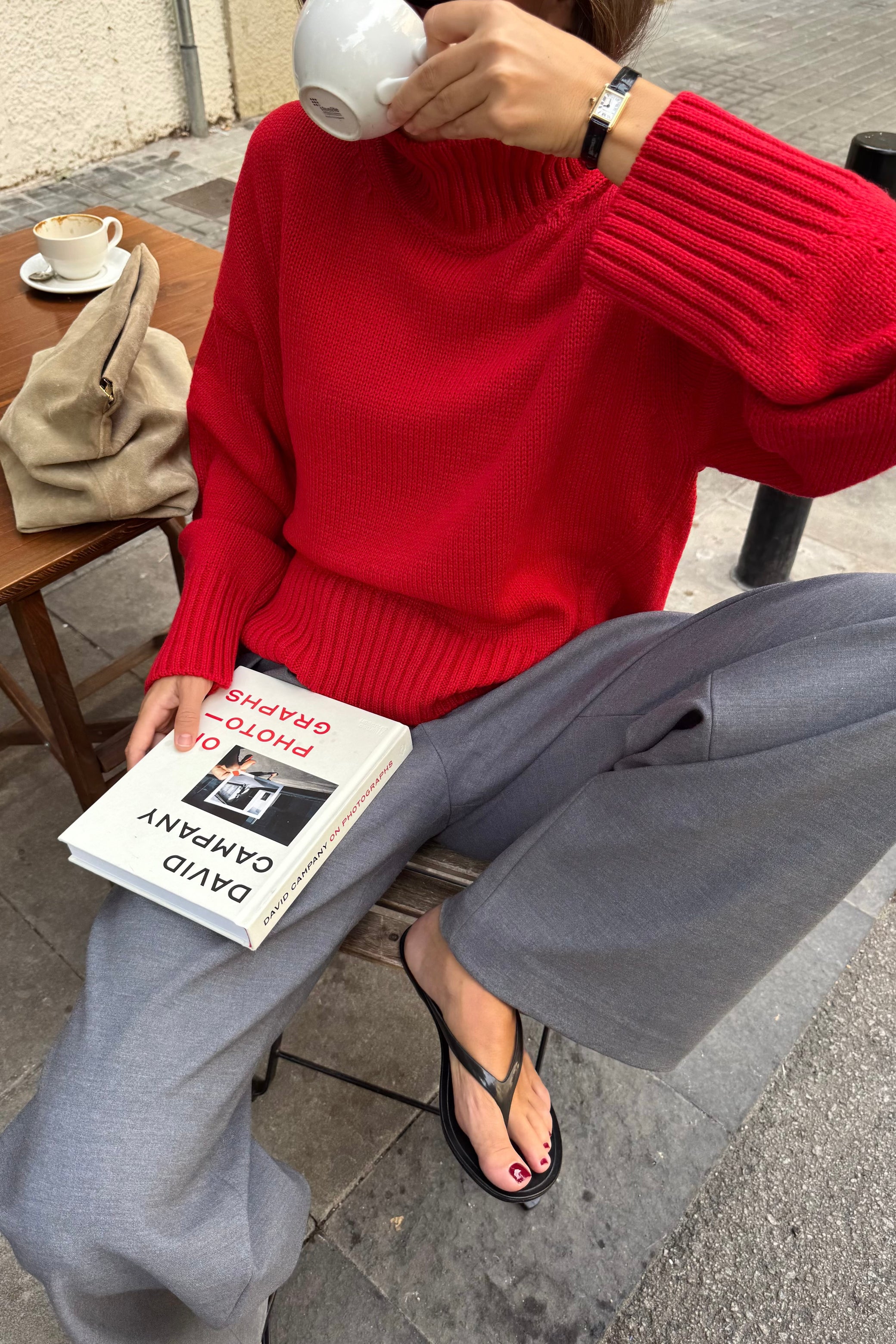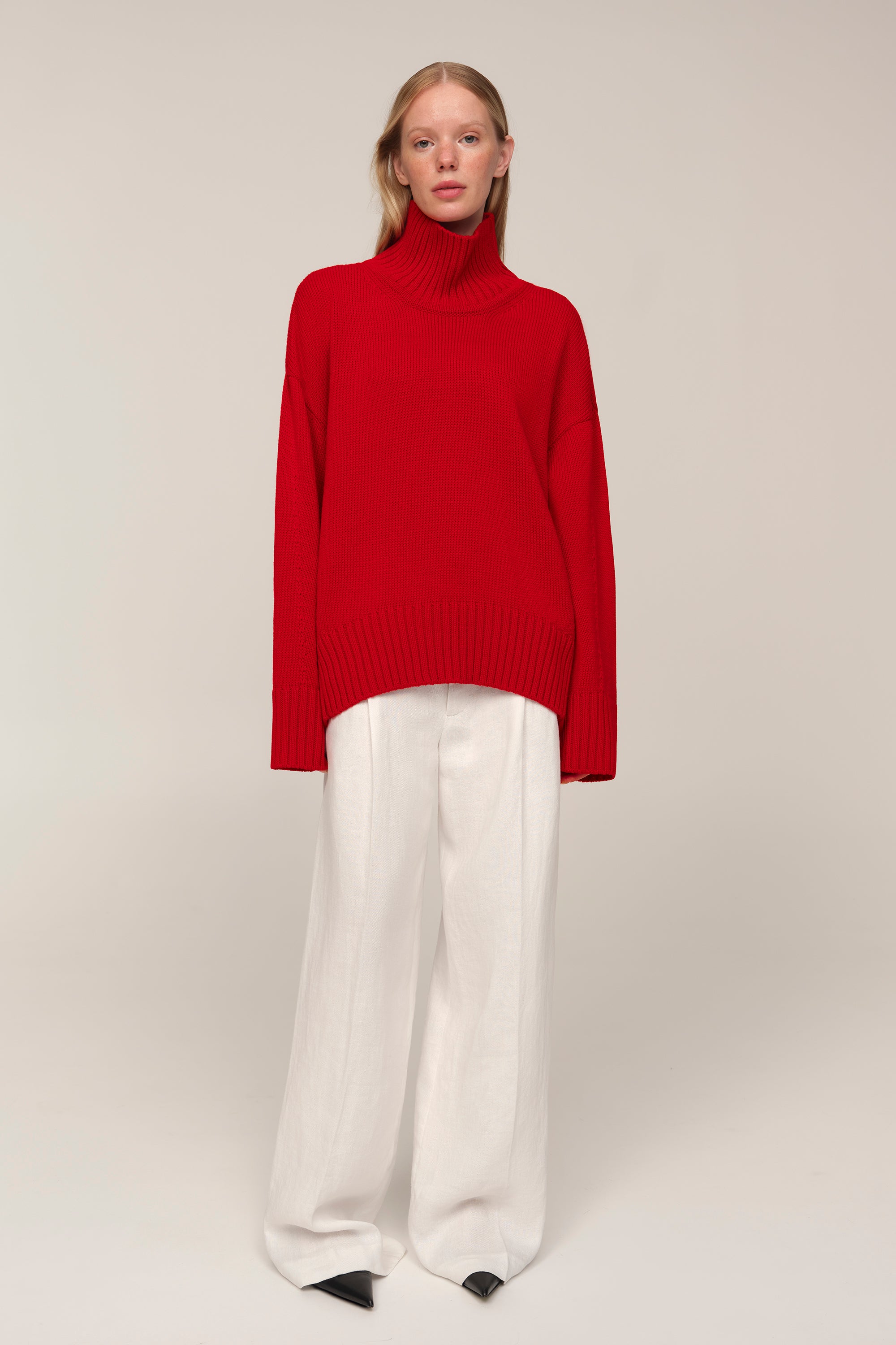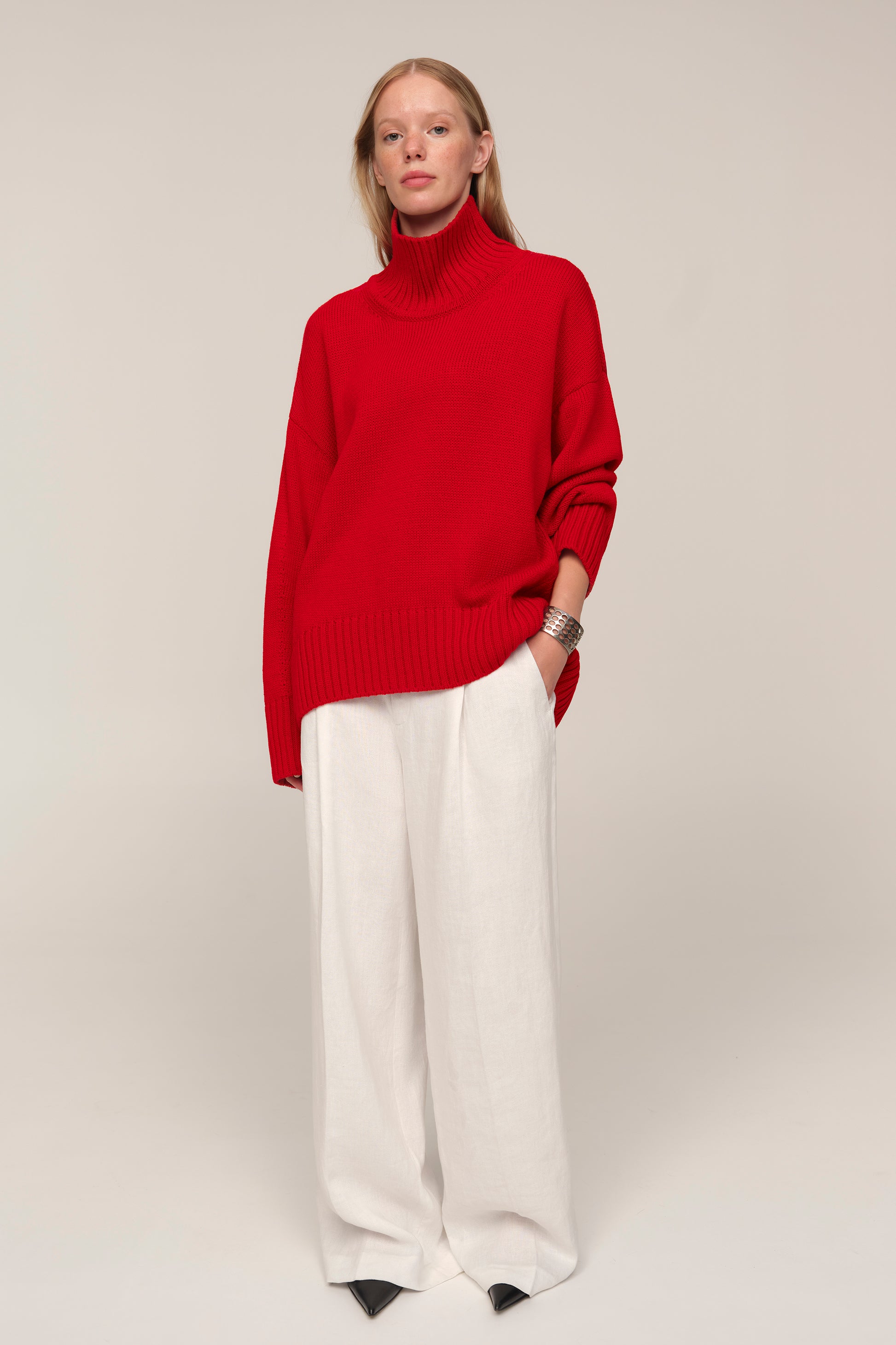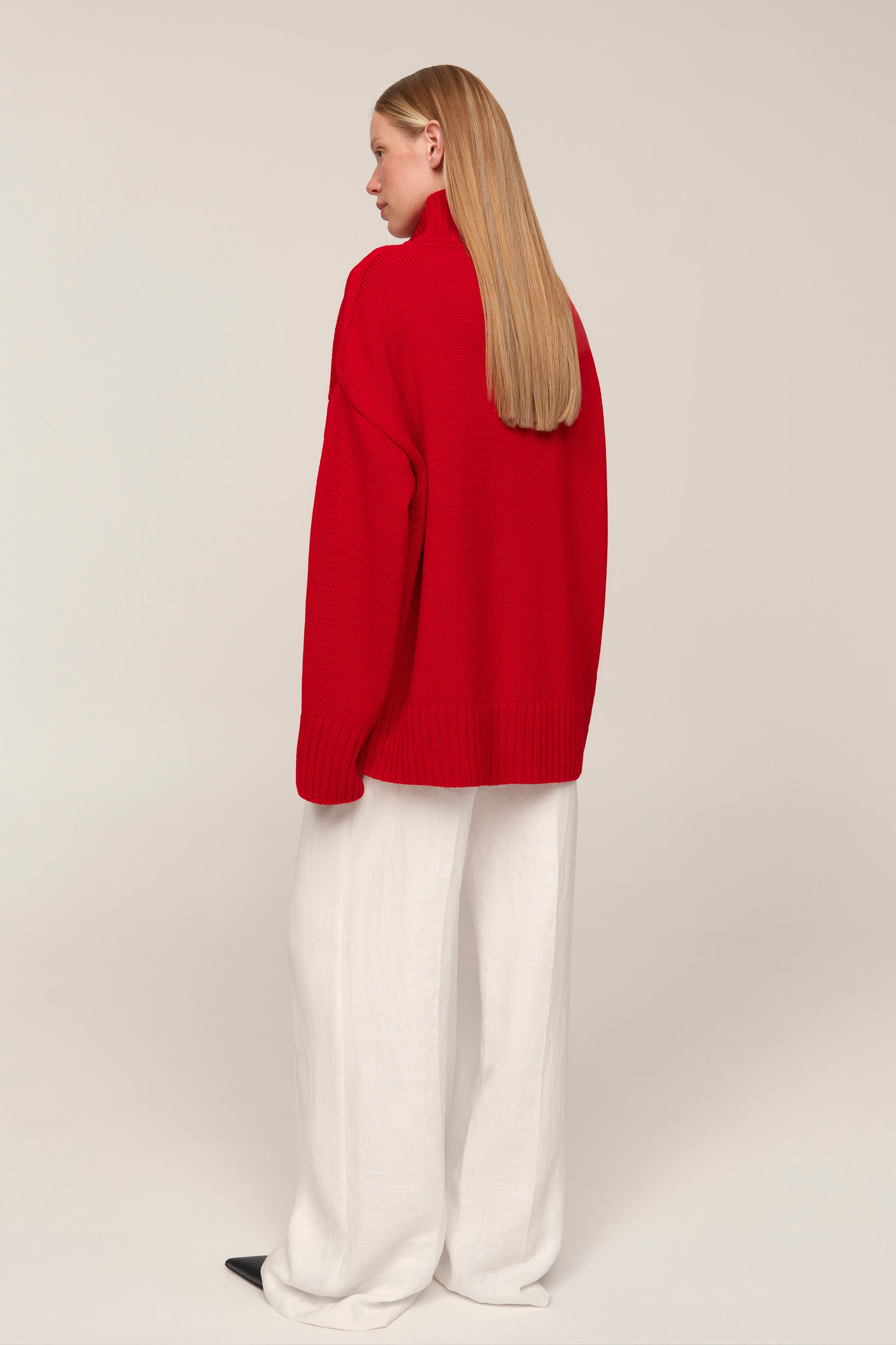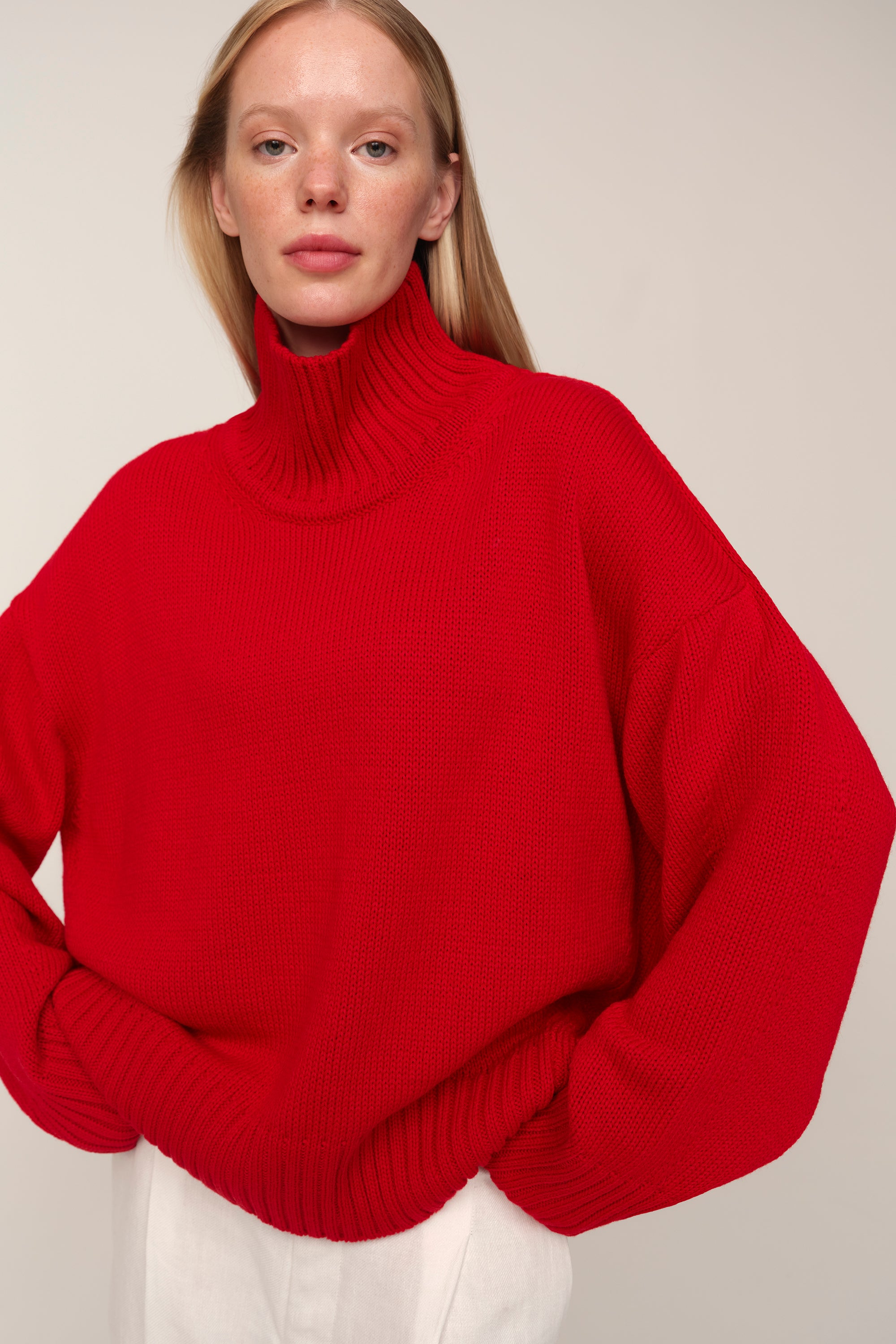 Цей светр із високою горловиною створений як сучасна класика, що поєднує комфорт і виразність форми. Його силует має відчутний об’єм, а різниця довжини між передом і спинкою додає конструктивної особливості та легкості. Подовжені рукава створюють відчуття затишку, а м’яка фактура підкреслює невимушеність образу. Це річ, що працює як основа гардеробу: природна у щоденних поєднаннях і виразна у більш продуманих стилізаціях.