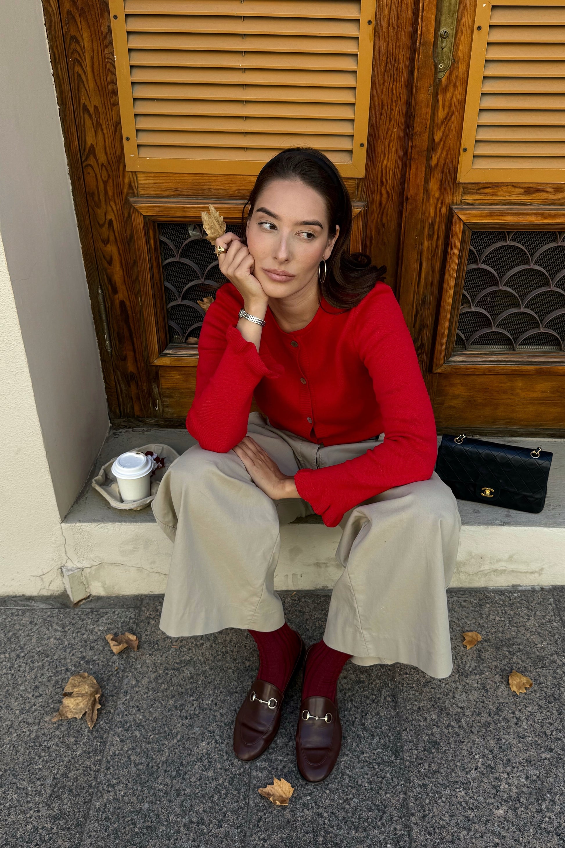 Ідеальний відтінок червоного, стримана довжина, фактурна рюша, перламутрові ґудзики. Легко носити розстібнутим, на голе тіло або поверх білого топа. Завжди спрацьовує!