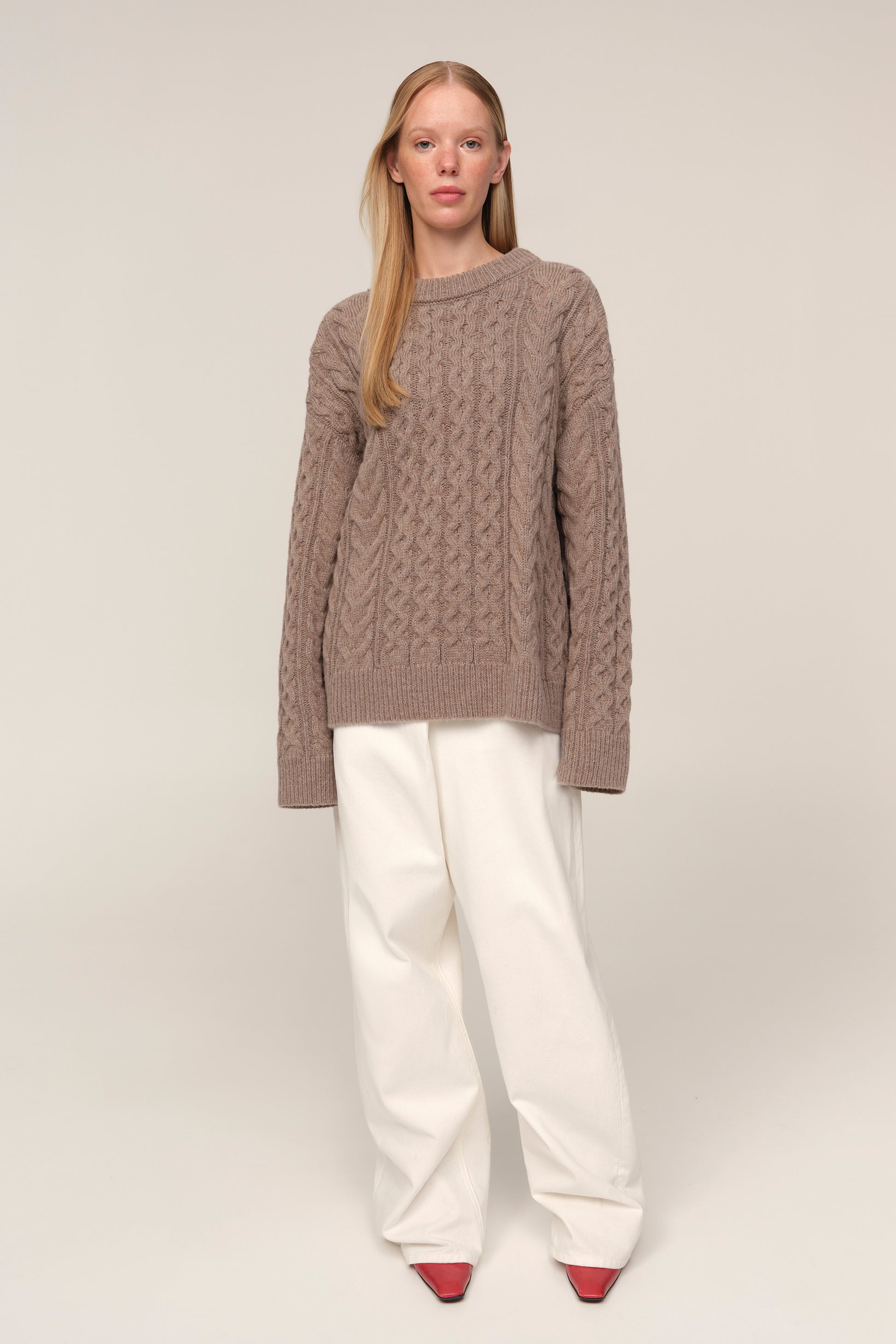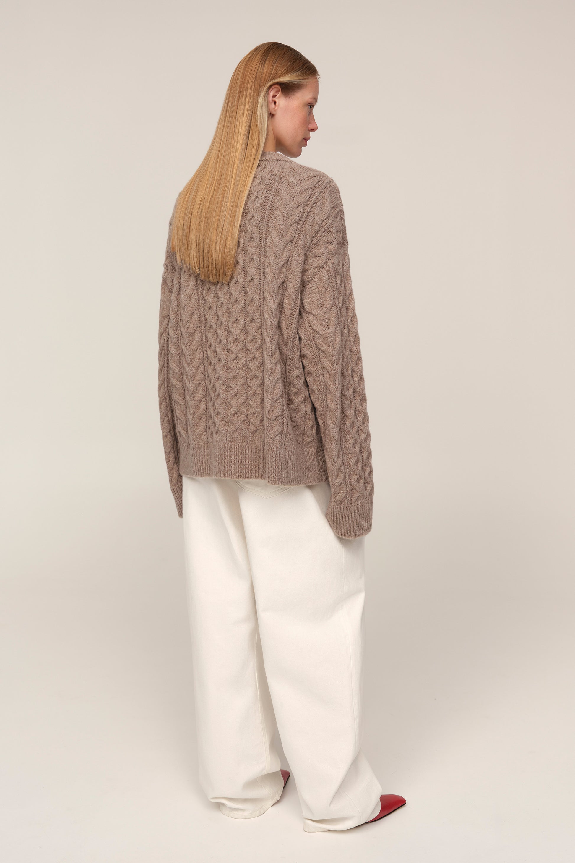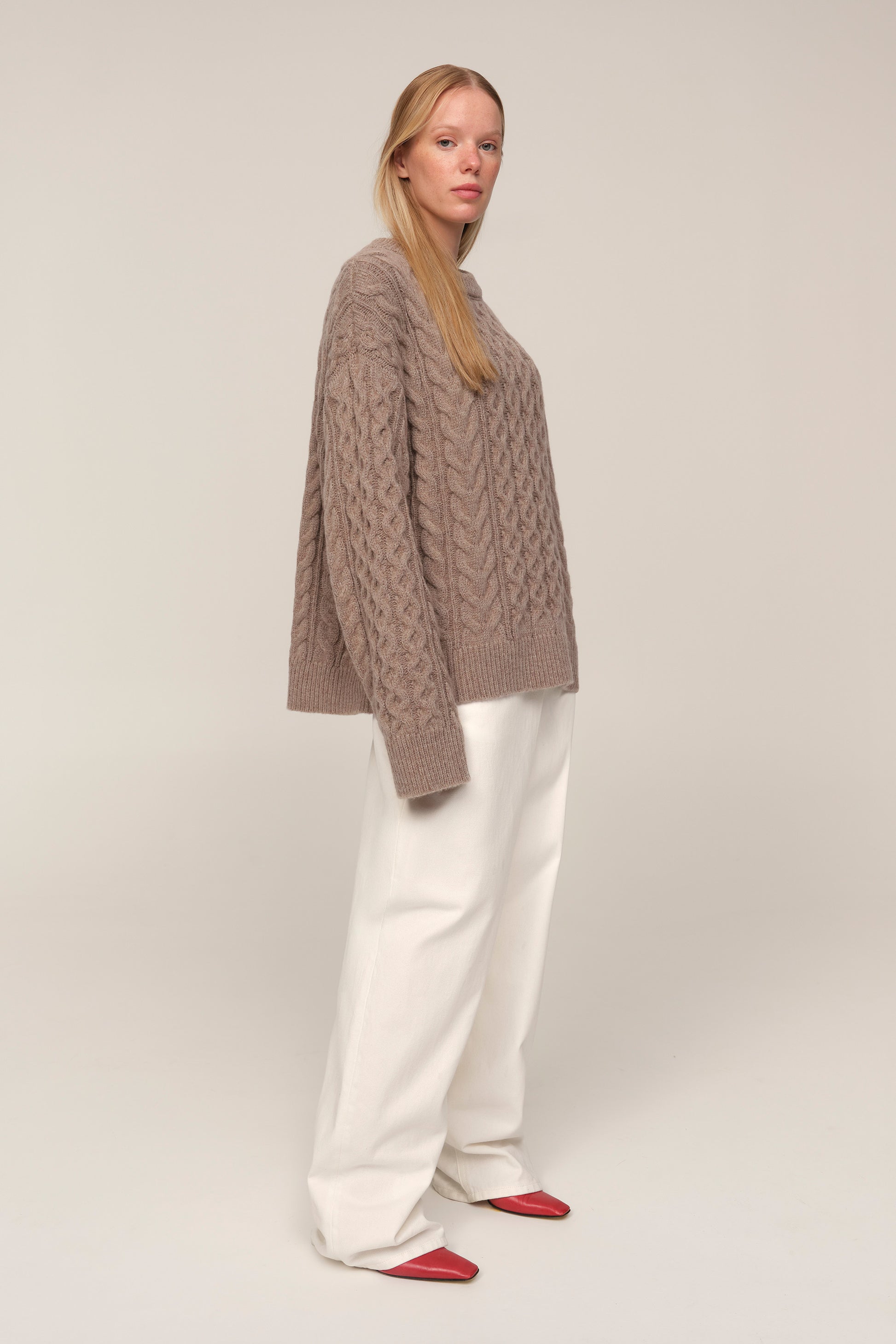 Светр Avena був розроблений як стримане втілення комфорту. Візерунок із кос має позачасову естетику, що відсилає до класичних архівів трикотажу, але водночас звучить м’яко й сучасно. Довгі рукава та силует з відчутним об’ємом роблять його невимушеним у щоденному образі — стриманим, але ніколи не буденним. Він працює як ключова річ гардеробу, органічний у простих поєднаннях і виразний у більш продуманих стилізаціях.