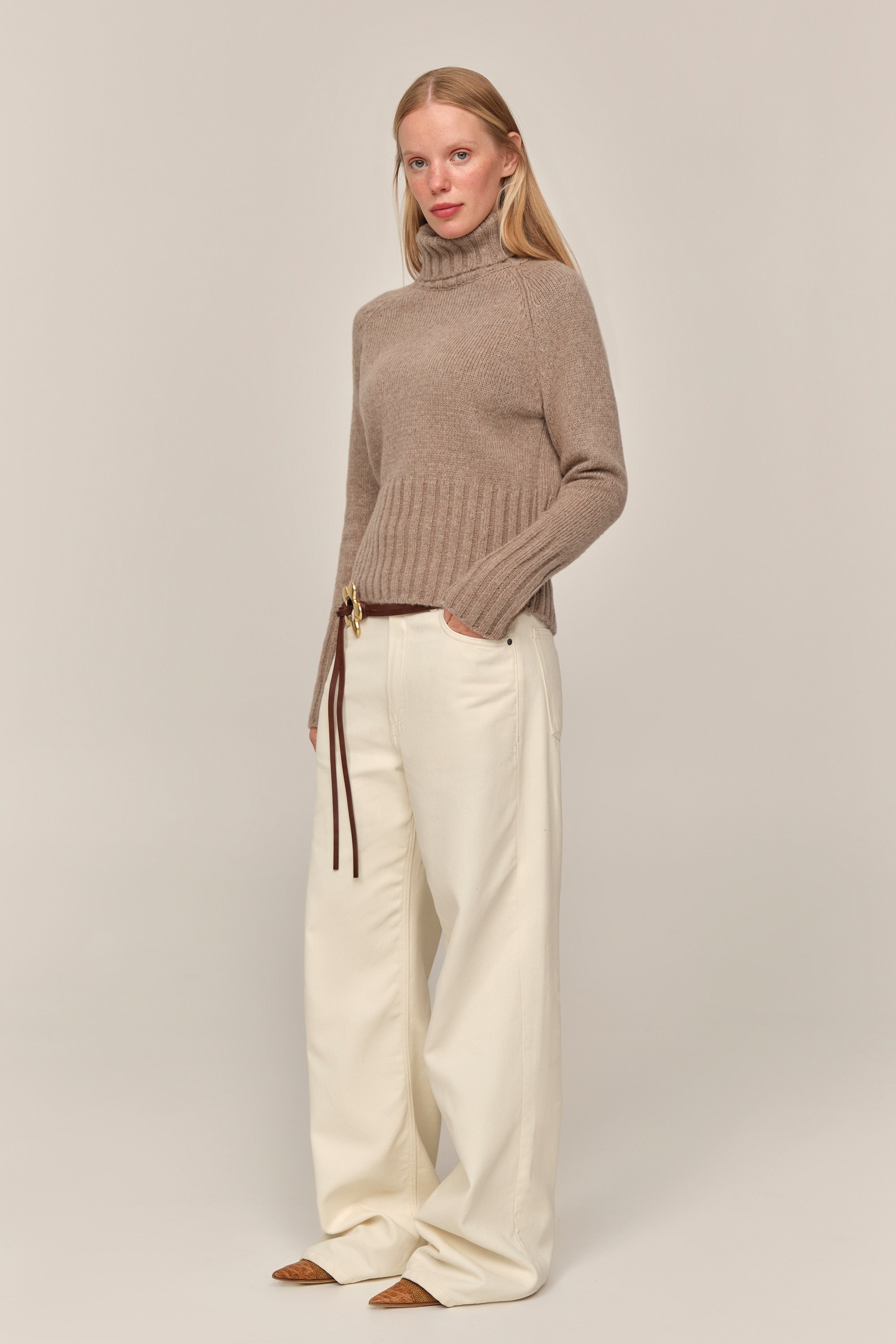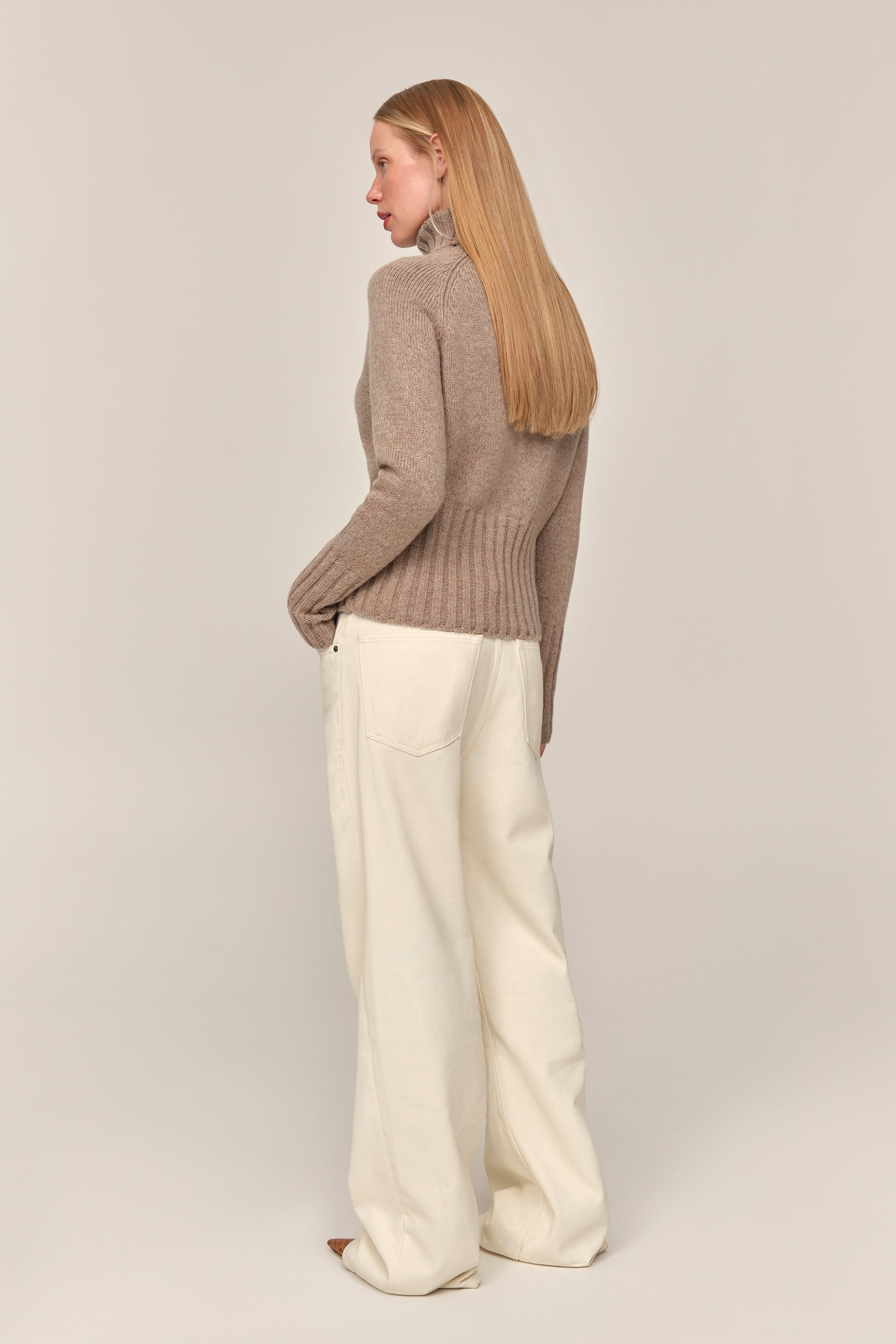 Orla — светр, створений для точності форми. Приталений силует, м’який комір і видовжені рукава формують чисту лінію без надлишків. Завдяки м’якій пряжі він комфортно прилягає до тіла й не створює відчуття важкості. Светр Orla найкраще розкривається саме у вашому розмірі — ми розробили його для точної, анатомічної посадки без надлишку об’єму.
